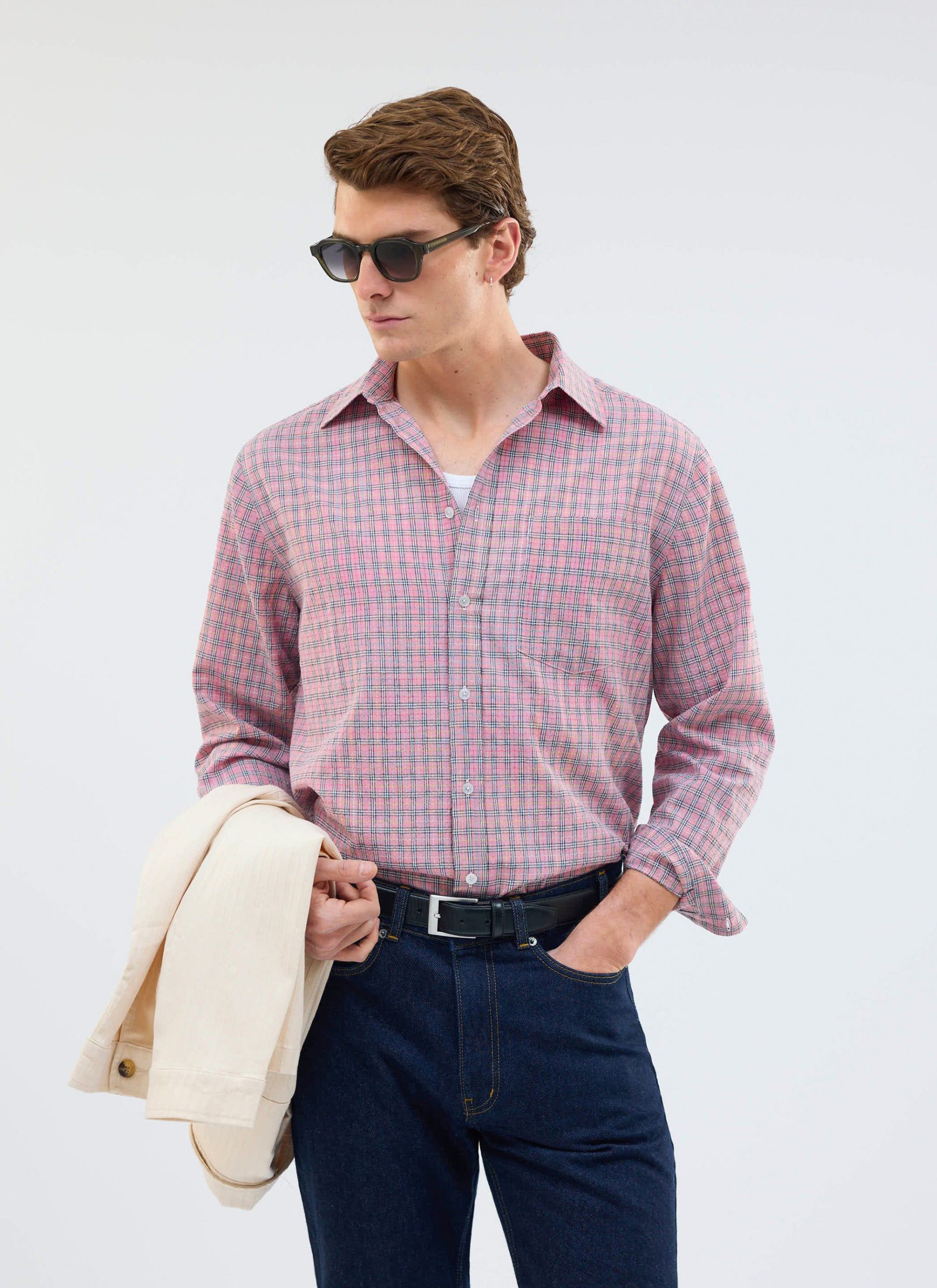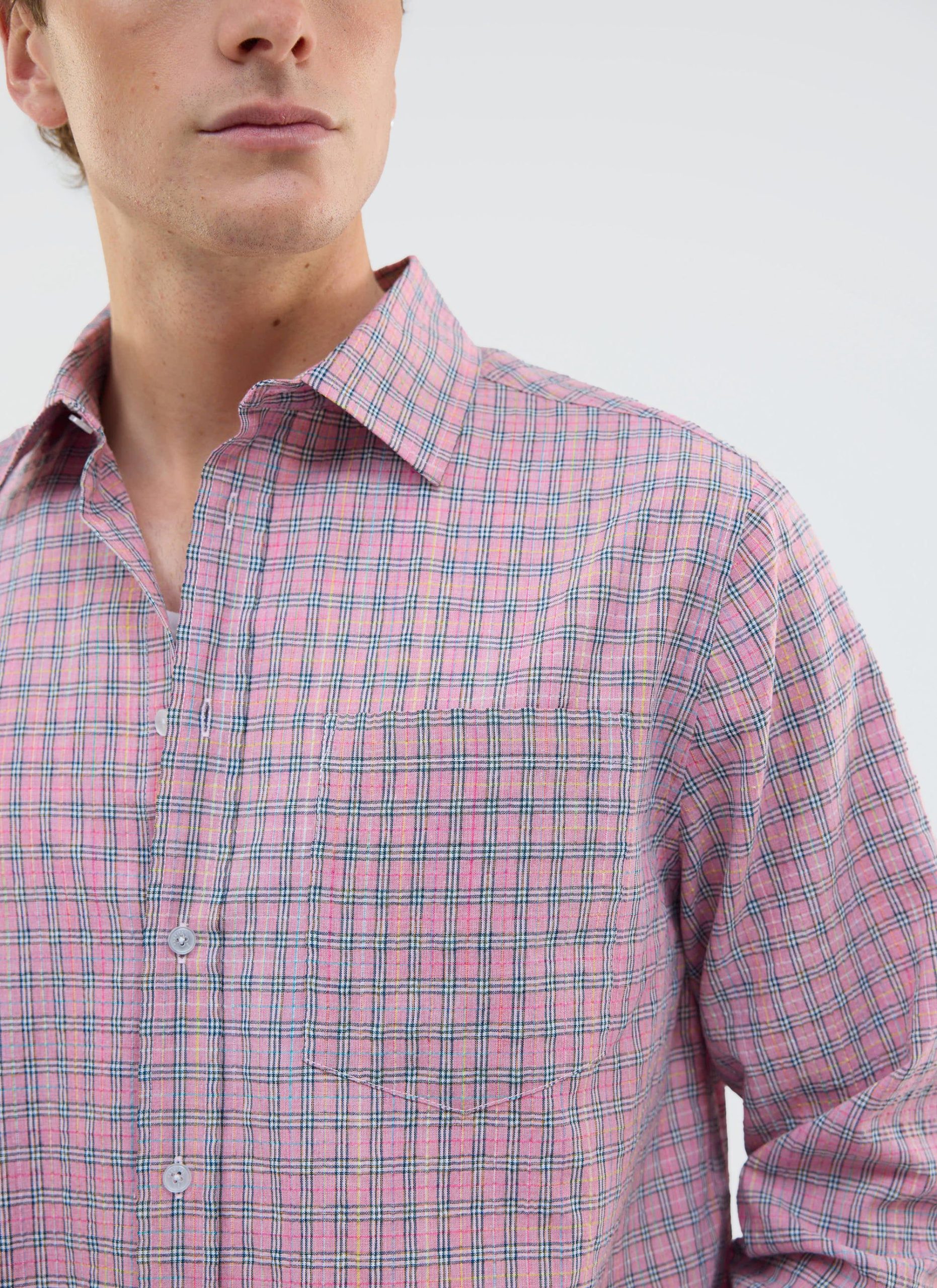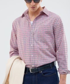 - Features: Men’s long sleeve shirt in pink, designed with a relaxed fit and crafted from a high-quality cotton blend for a durable yet lightweight feel. Featuring easily foldable cuffs, a chest pocket, custom Percival buttons, and a traditional point collar, this checkered smart casual shirt offers a sophisticated edge. Ideal for transitional months, it can be worn on its own or layered over a shirt or vest for versatile styling.