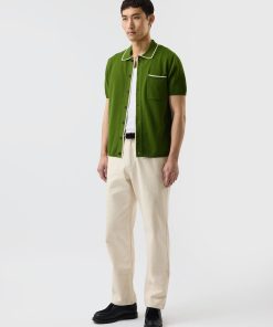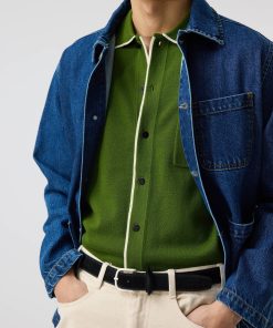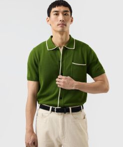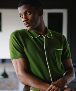 - Features: Crafted in a rich forest green, this men’s knitted shirt blends timeless style with summer-ready comfort. Made from a lightweight, breathable wool blend, it keeps you cool and polished in warm weather. Designed with short ribbed sleeves, a classic button-down front featuring custom Percival buttons, and a practical chest pocket, it’s a versatile staple for any wardrobe. Whether you’re dressing up or down, this green knit shirt adapts effortlessly to your day.