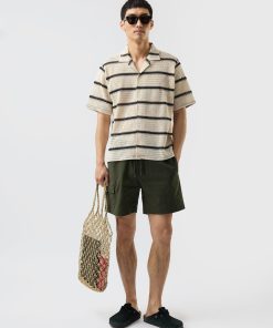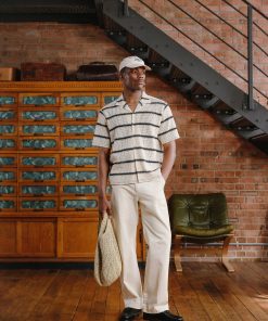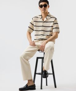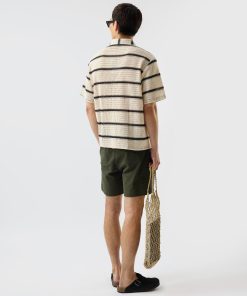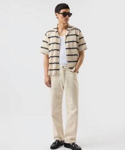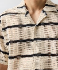 Percival Men’s Crochet Groundsman Cuban Shirt | Ecru With Black