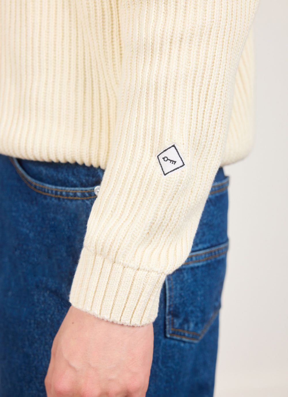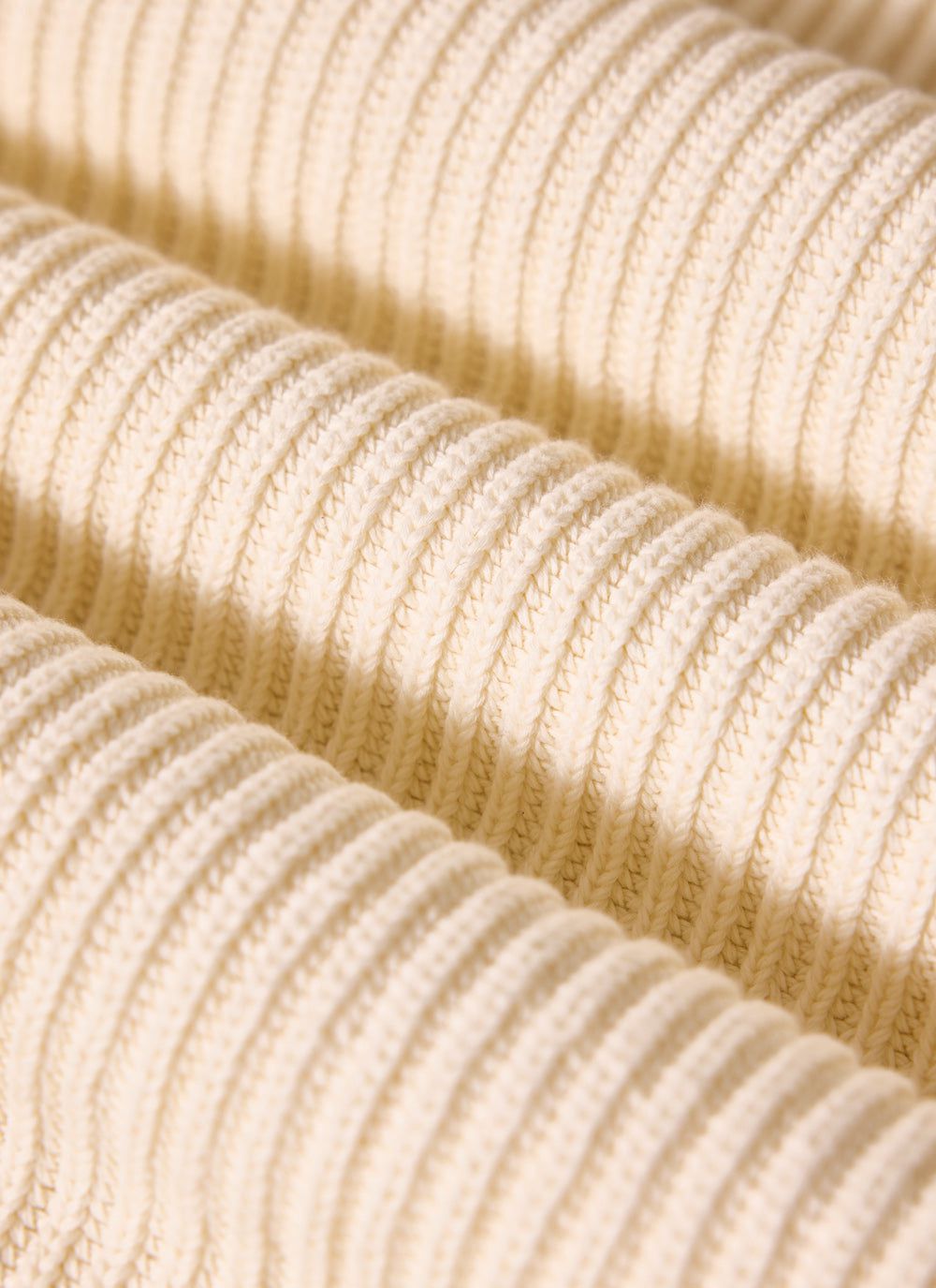 - Features: Made in Portugal from 100% organic cotton in a chunky knit ribbing construction. This cream jumper offers a comfortable and stylish option for cooler seasons with its classic crew neck and raglan design.