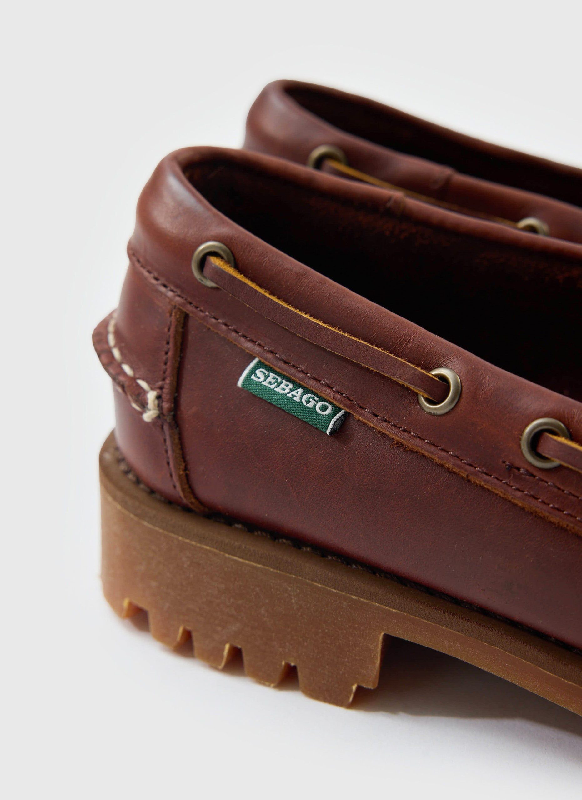 Created to welcome the colder season, these sturdy boat shoe come mocs were born combining the classy comfort of an iconic boat shoe vamp and upper with the endurance of a thick honey gum commando sole that grants weather-resistance and improves stability and traction.