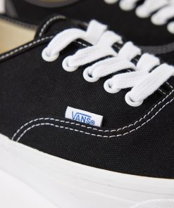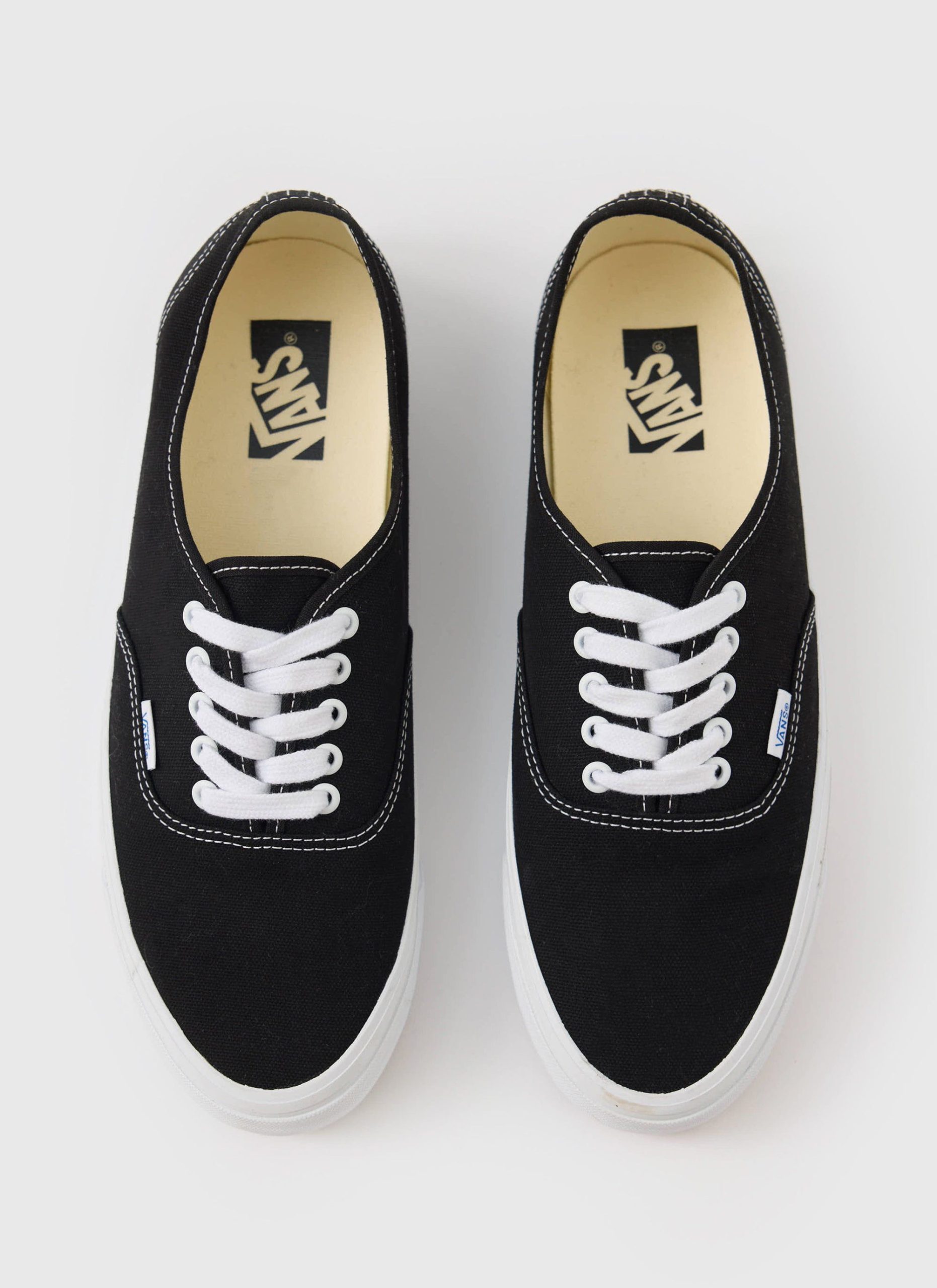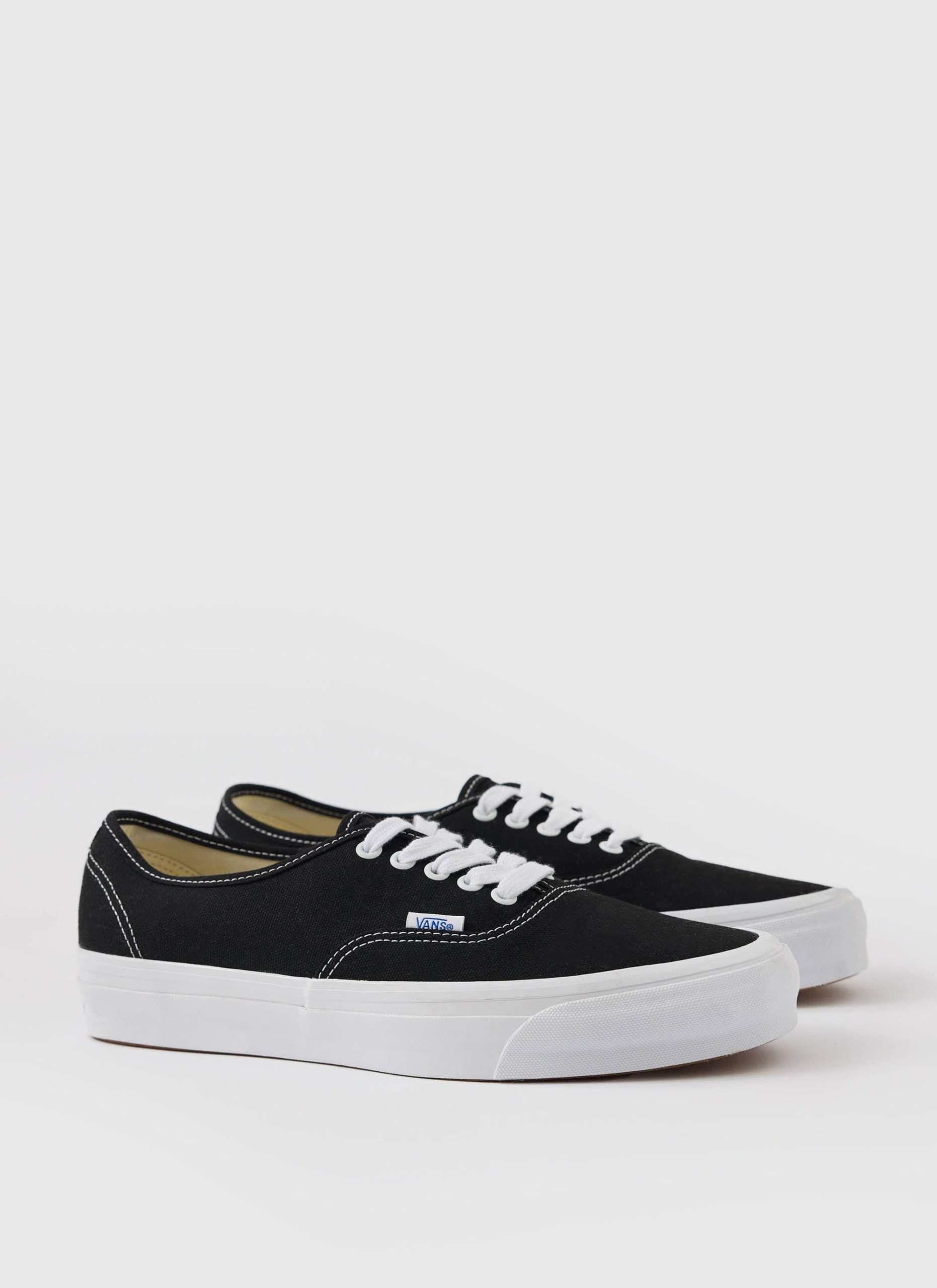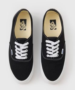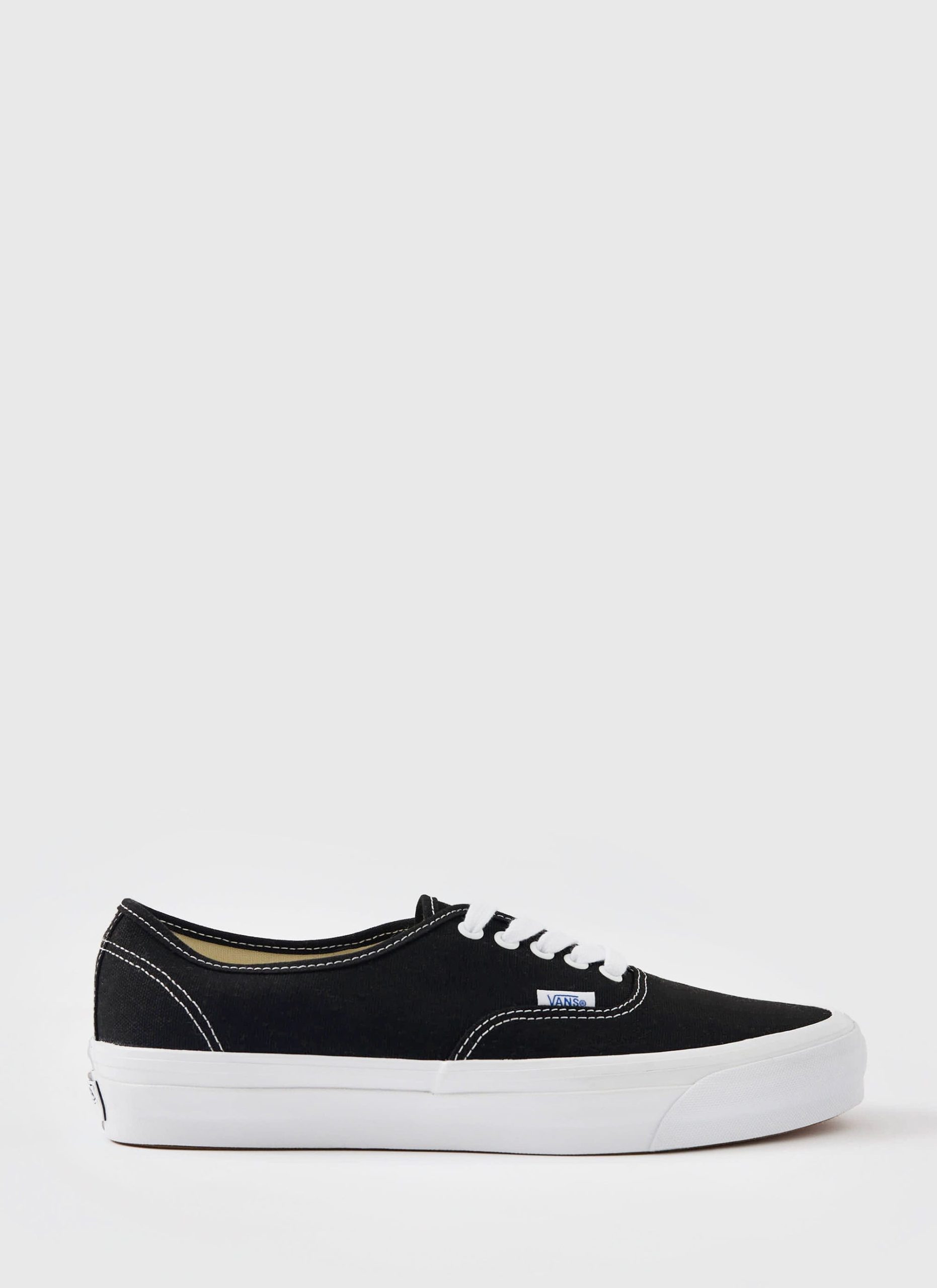 - Features: Vans Authentic 44 Premium Skate Shoes in Black and White. A modern take on Vans’ iconic heritage low-top. Built with 226 gm canvas and detailed with a full-grain leather collar lining, these black and white trainers offer a balanced blend of durability, comfort, and elevated style. Featuring a woven Vans flag label and gloss-finished higher sidewalls, foxing tape with original ’90s Osnaburg reinforcement for vintage-inspired structure and Sola Foam All-Day Comfort (ADC) insole – a 30% bio-based, anti-fatigue material for everyday cushioning.