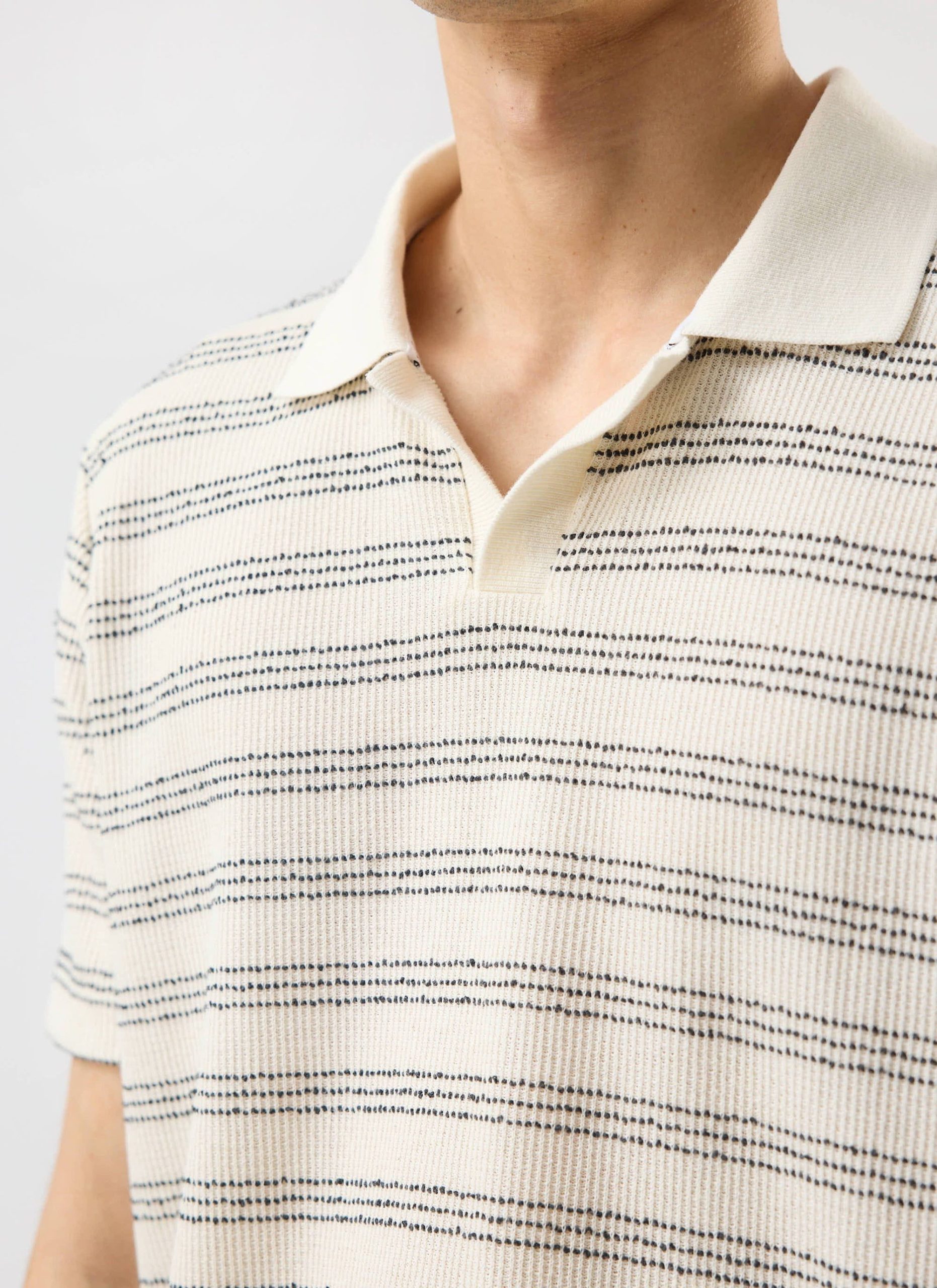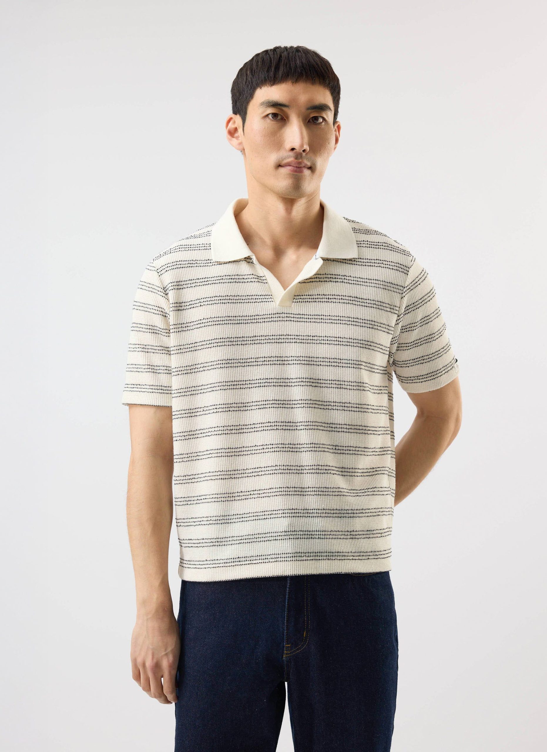 Features: Men’s knitted polo shirt with an open collar, made from a breathable cotton blend. Designed for a comfortable fit, this versatile cream polo is perfect for every occasion and pairs effortlessly with any outfit. A finely ribbed men’s polo shirt with vertical stripe detailing, designed with a classic ribbed collar, open placket, and finished with the signature Perci badge on the sleeve. Combining texture and timeless style, this striped polo is an effortless staple for everyday dressing.