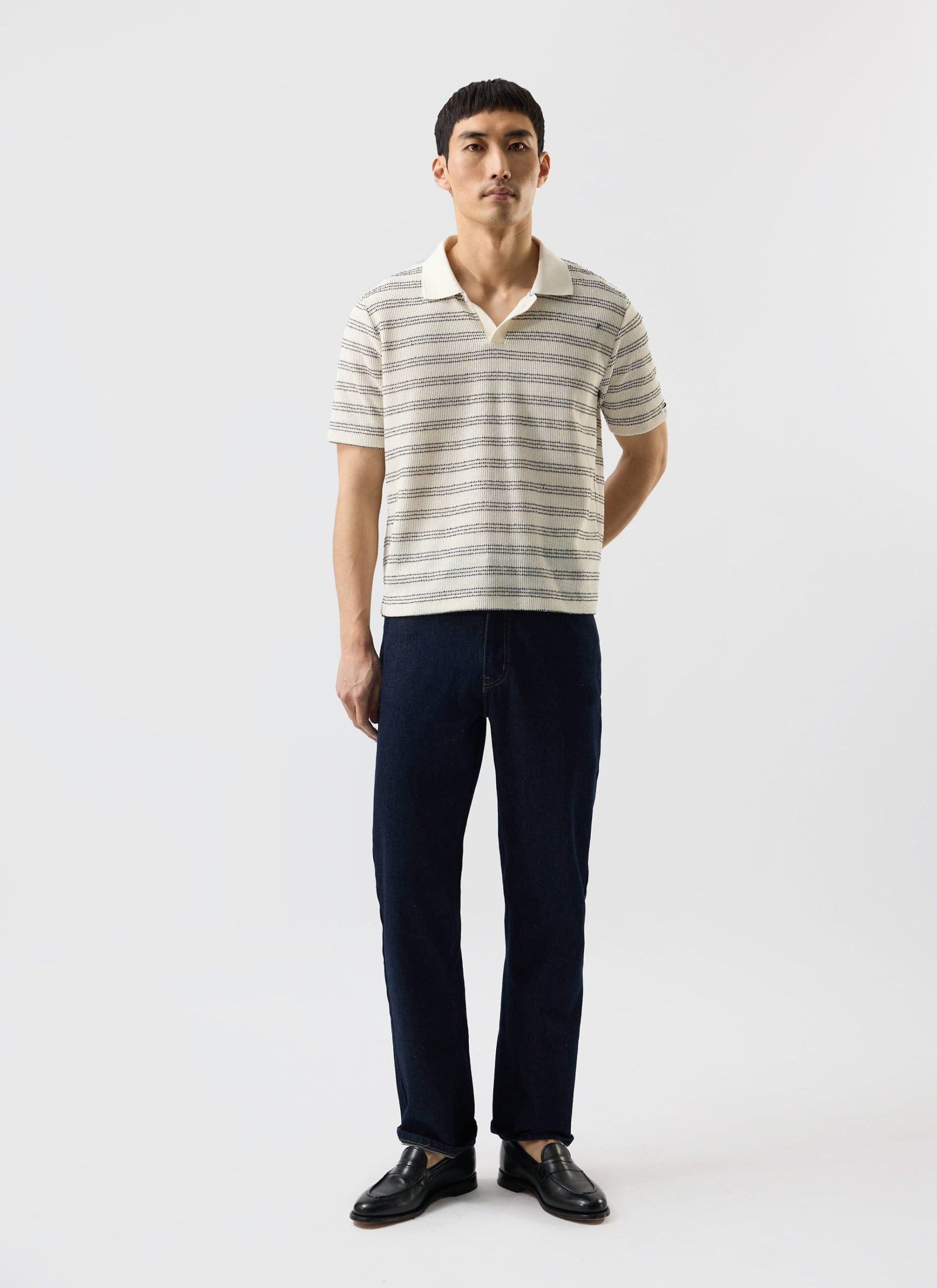 Celebrating lake side vacays, hand me down fishing kits and the skills that go with it. Percival SS25 Drop 3 Le Grand Lac, The Big Lake, is here. Serving looks, and spilling the odd drink, the Laurent Open Collar Polo is made by our friends in Portugal in a knit cotton blend jersey fabric, it’s a polo ready for the soft launch of your summer self. Made in limited quantities from quality materials.