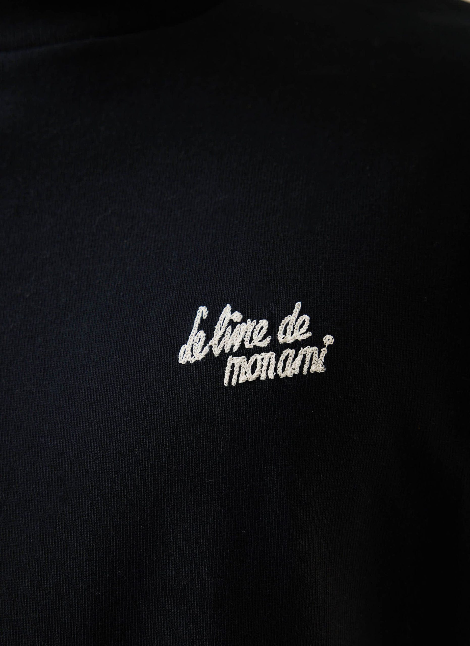 Le Livre De Mon Ami oversized T – embroidery at chest, classic print at back from hand drawn illustration. Books are open all hours.