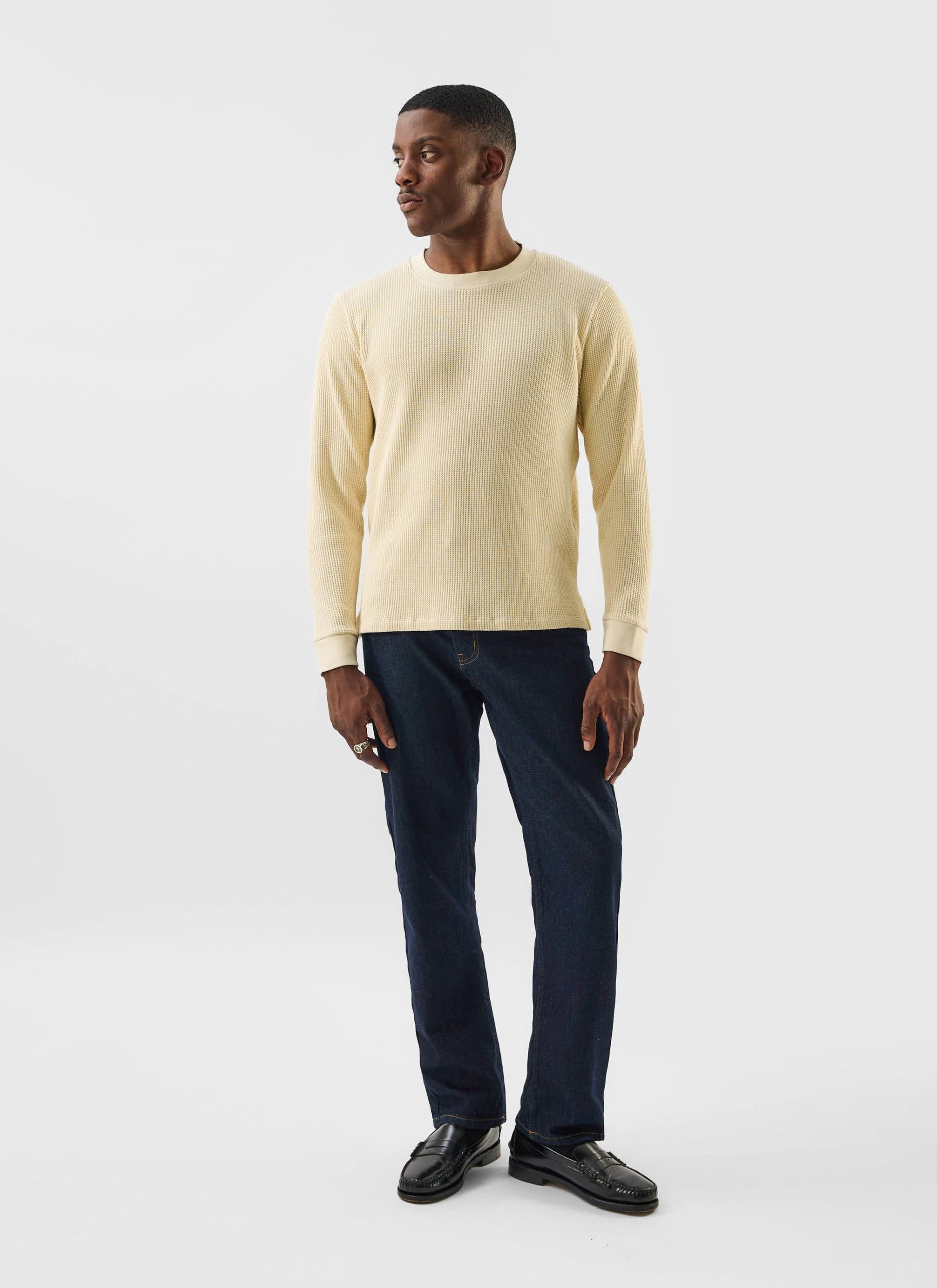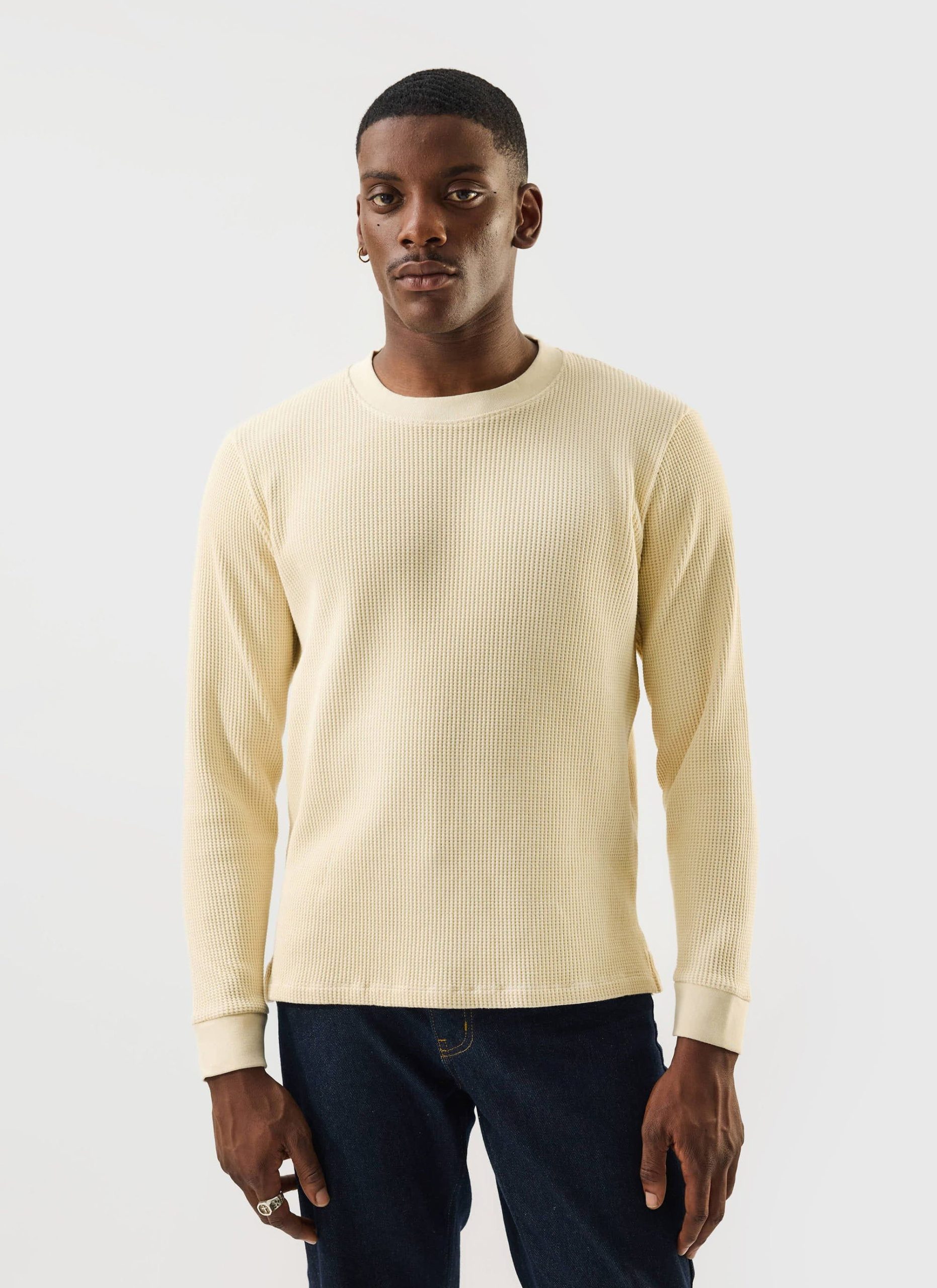 Men’s Waffle Long Sleeve T Shirt in Cream