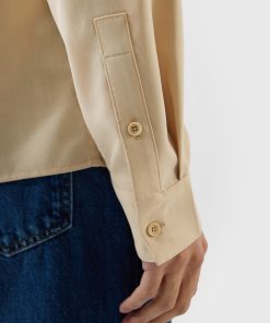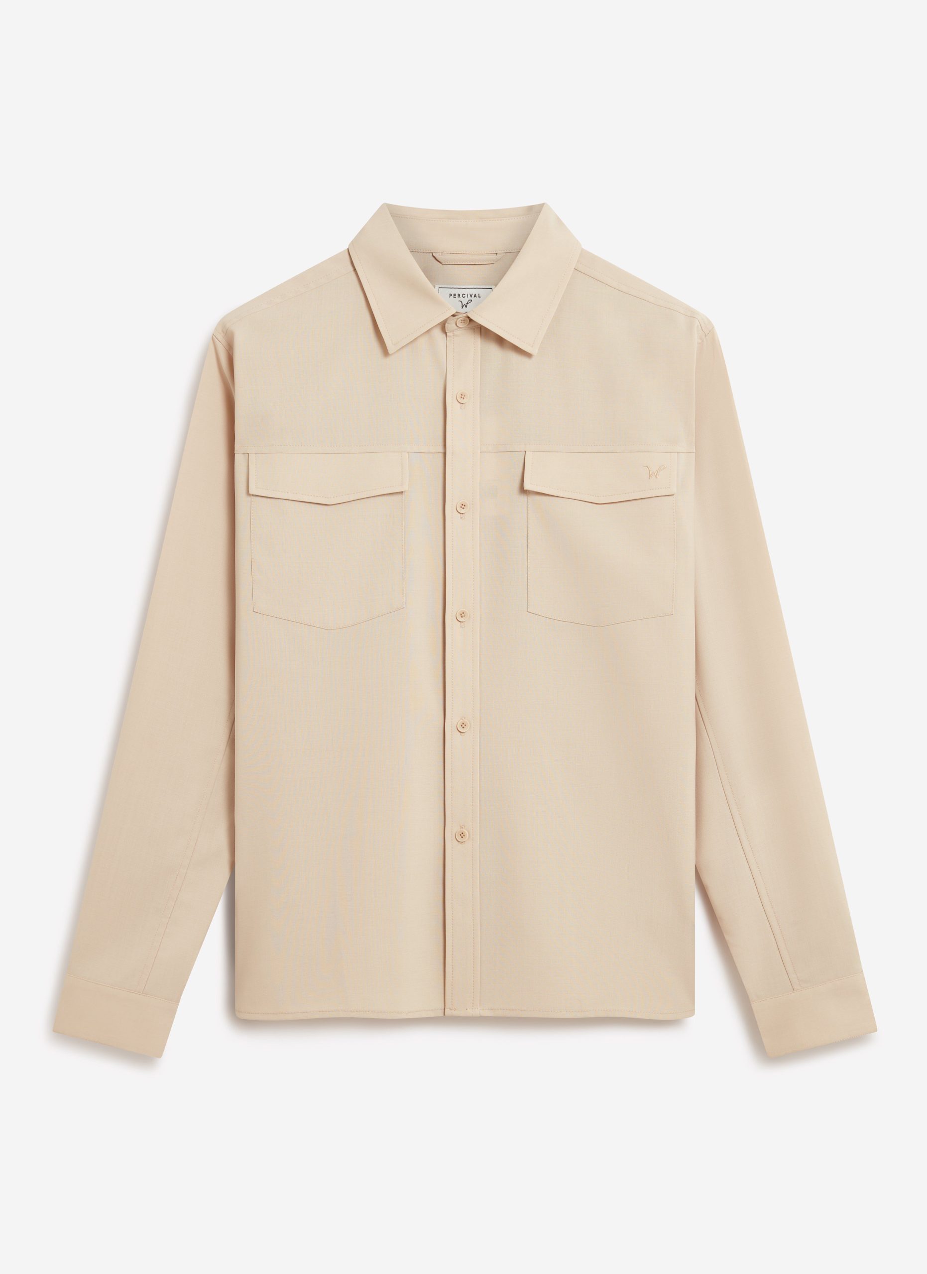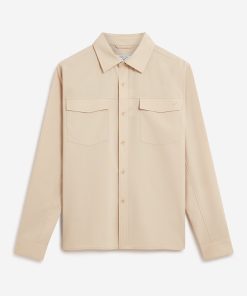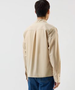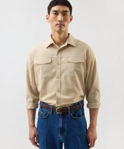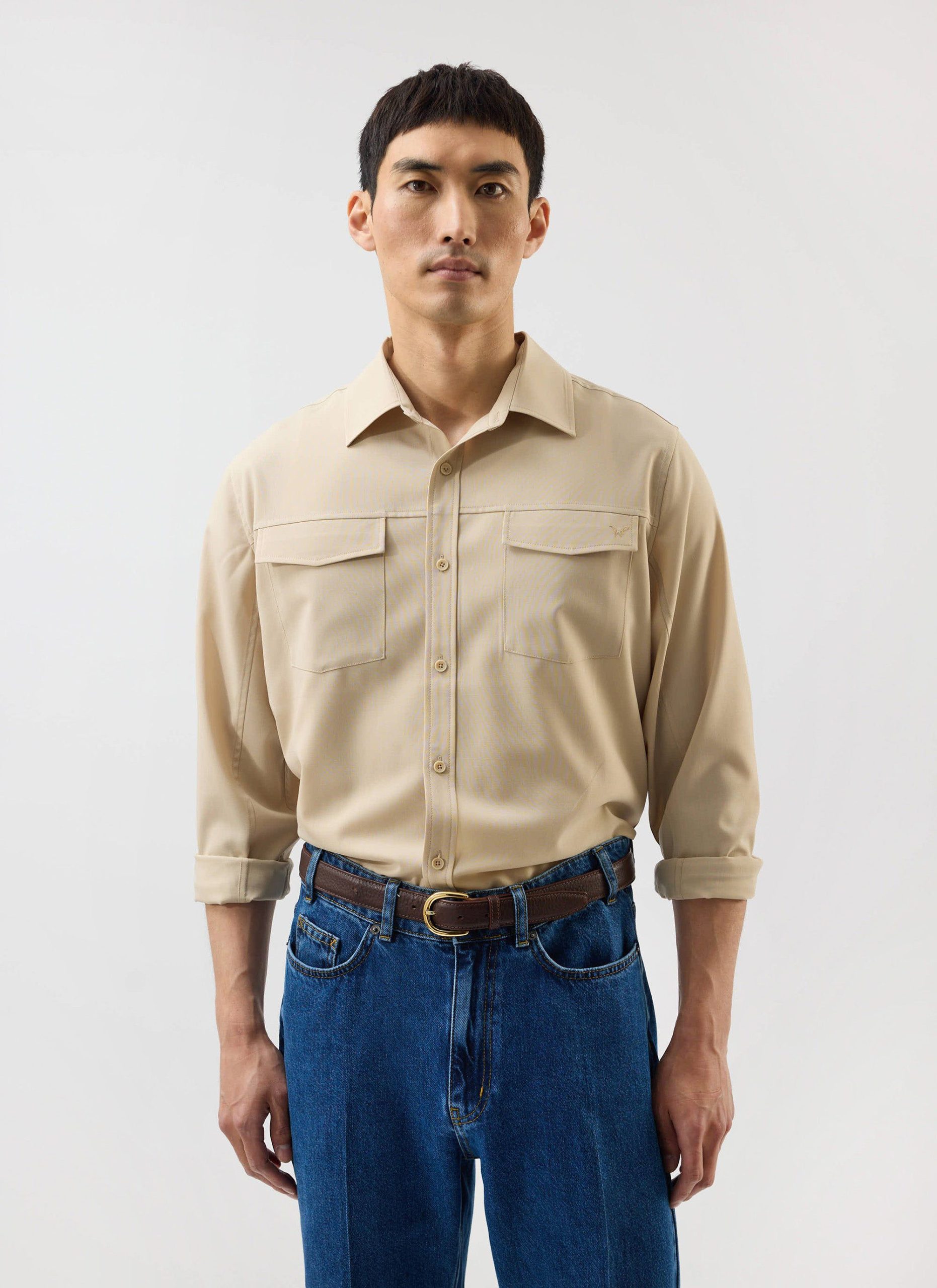 - Features: Men’s Long Sleeve Utility Shirt in Beige, as part of the . This regular fit shirt is made from a premium wool blend, offering a refined take on classic safari styling. Featuring two chest pockets, a sharp point collar, easily foldable sleeves, and subtle tonal stitching, it delivers a smart update to vintage American workwear. A versatile piece for layering or standalone wear across seasons.