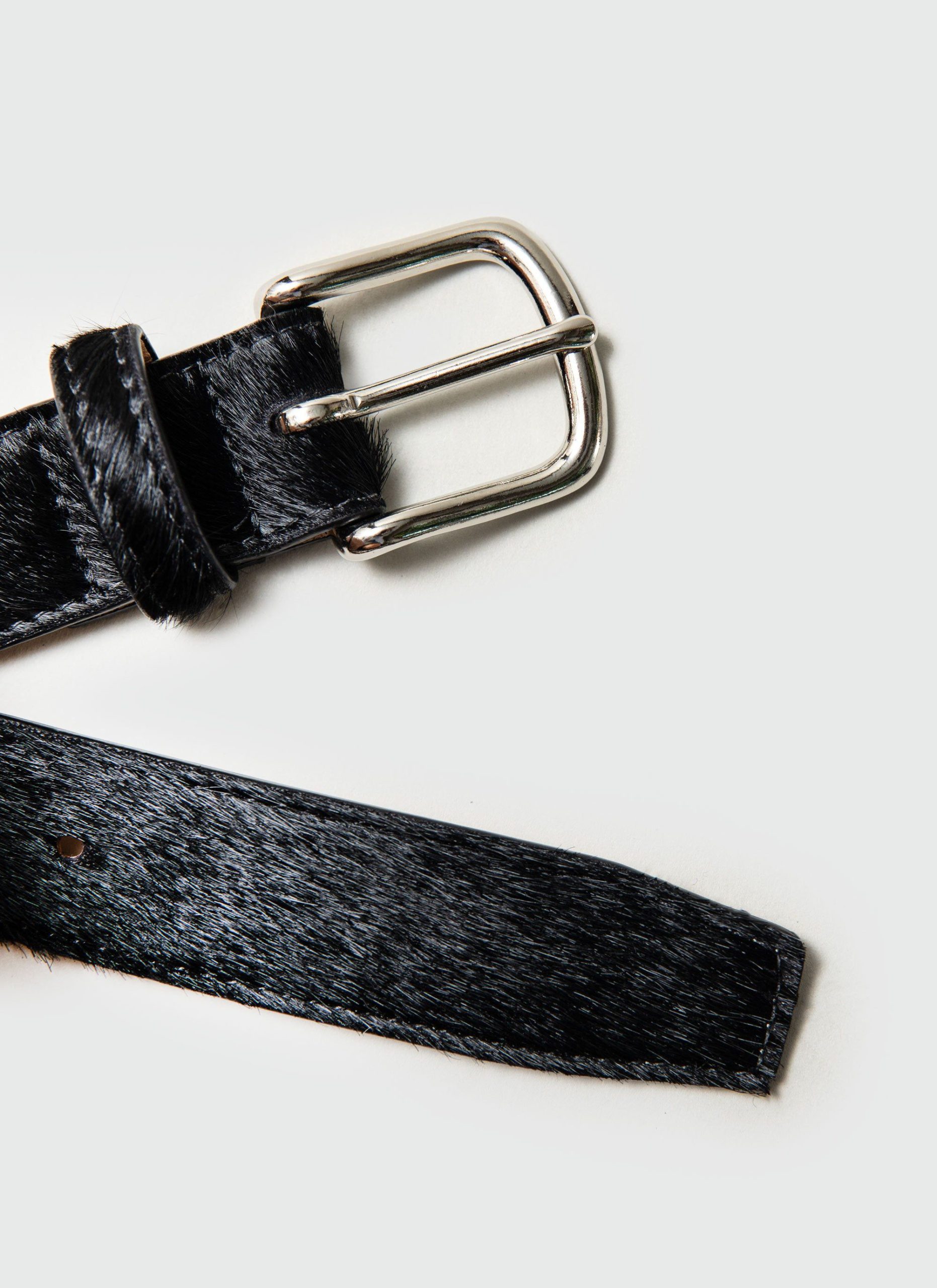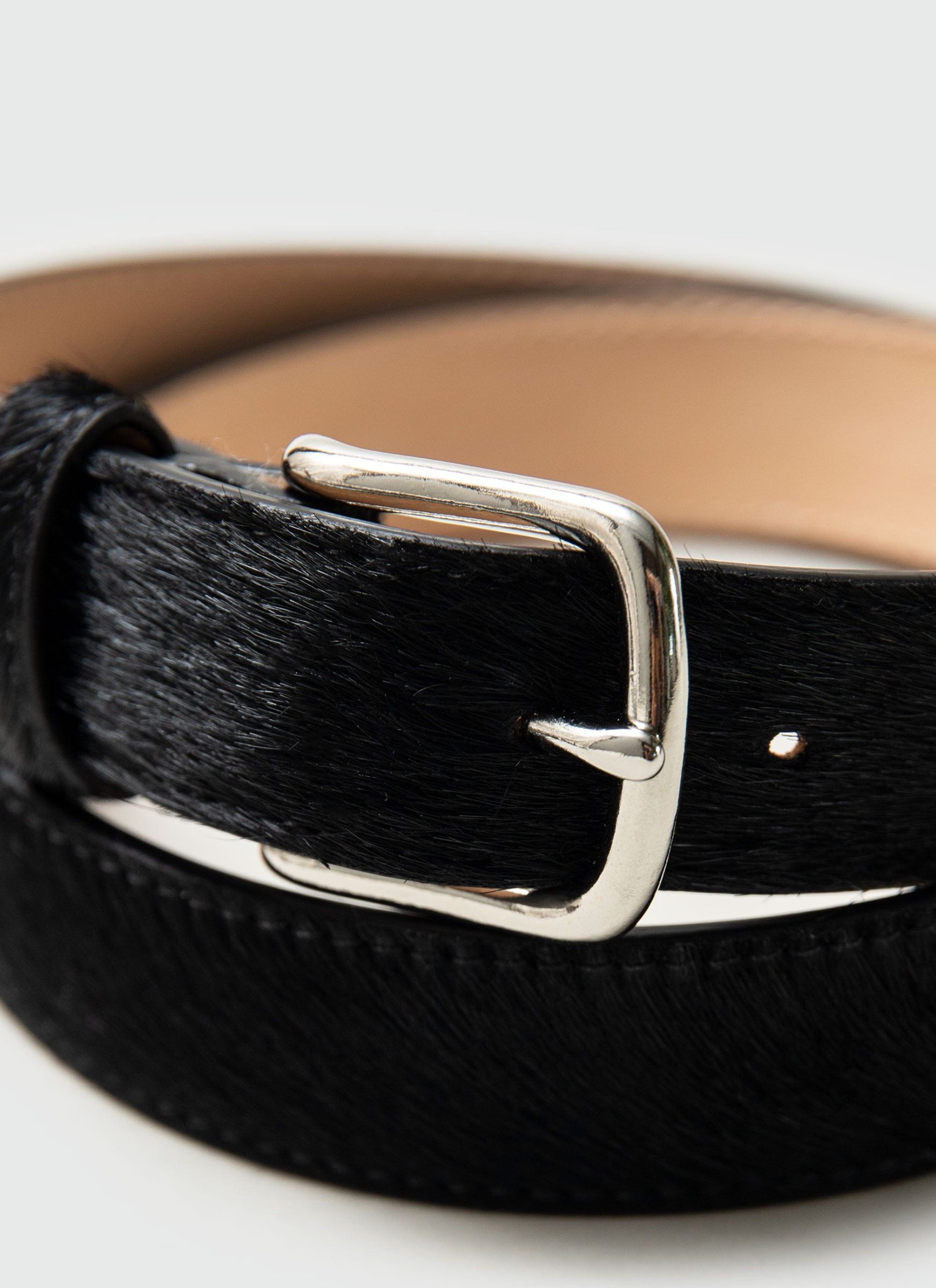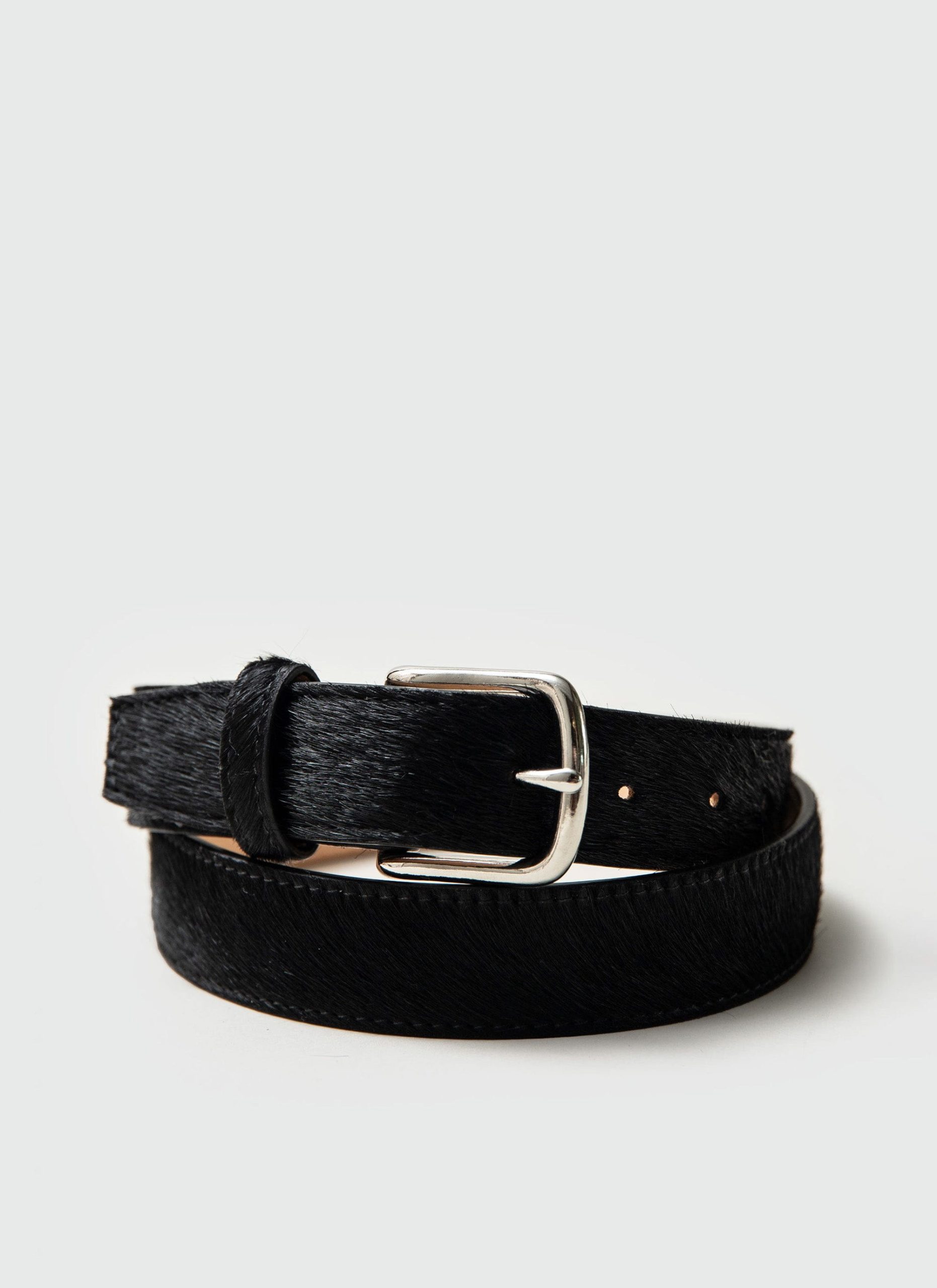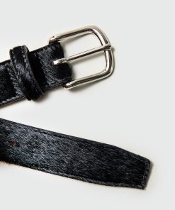 - Features: Pony Hair Leather Belt in Black. Made in London at a very limited run of 30, this men’s leather in black comes in 3 sizes and is fully adjustable. Featuring a Percival debossed interior stamp and dust bag for travelling. This belt is ideal for perfect for elevating your everyday outfits with a sharp but unique design.