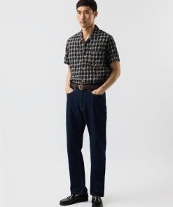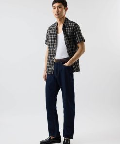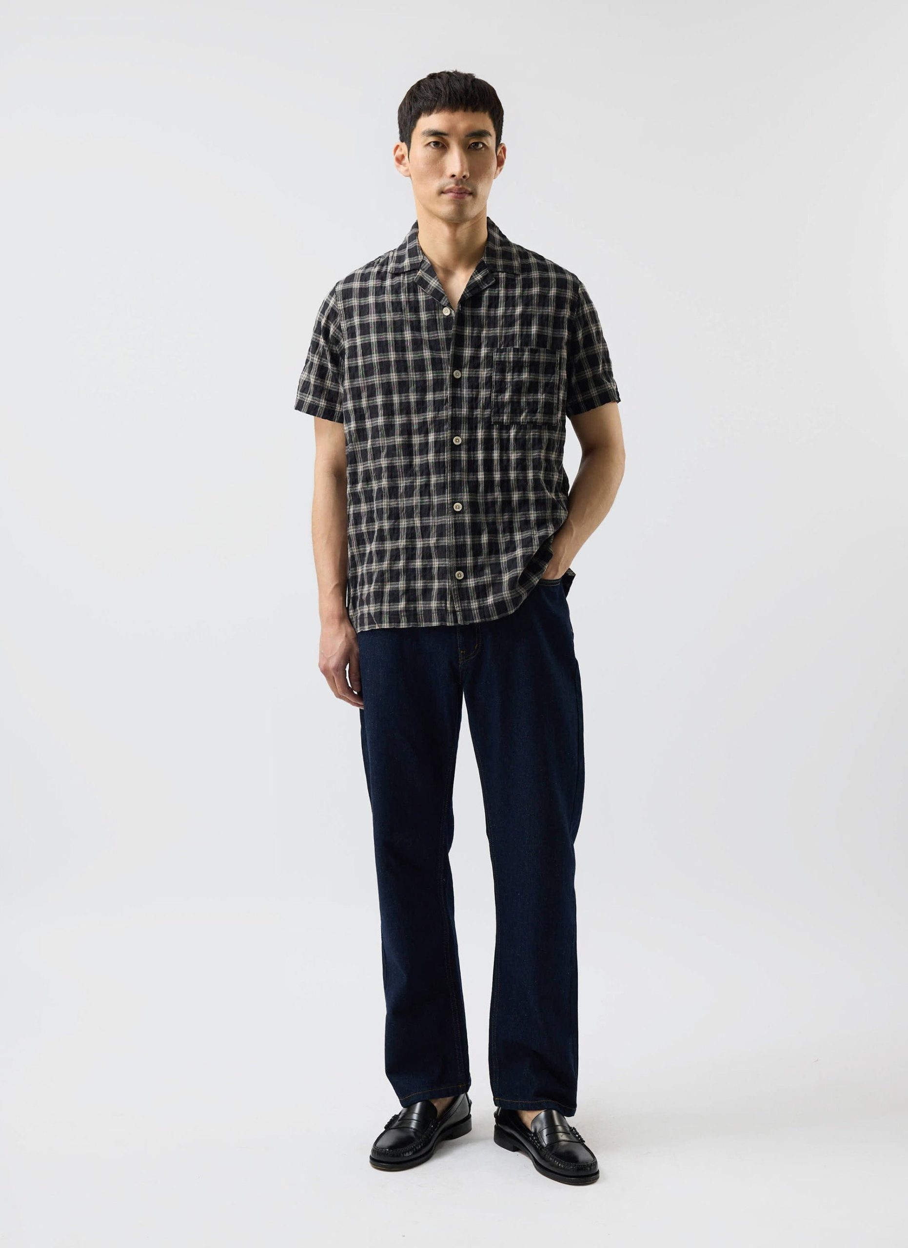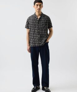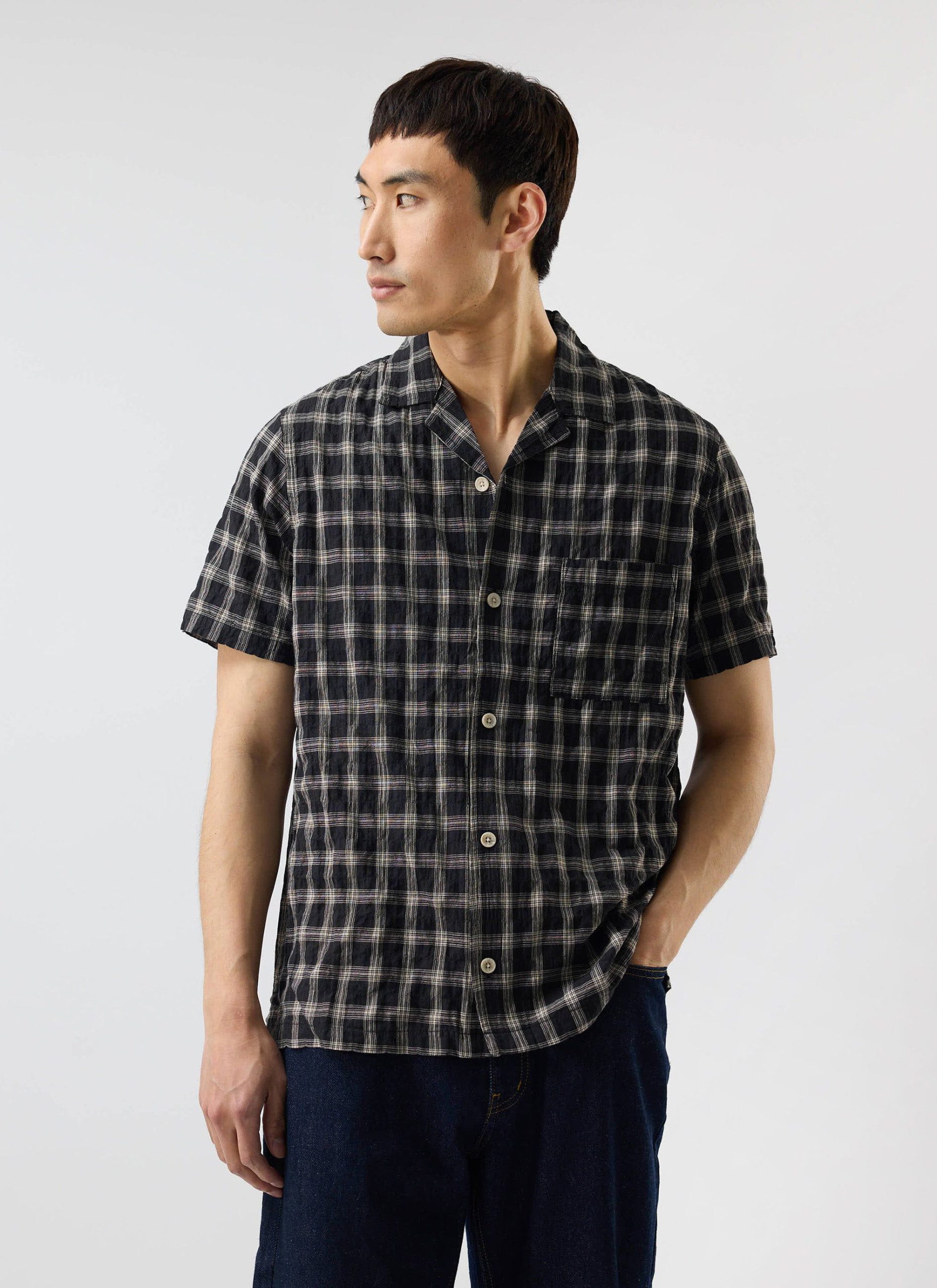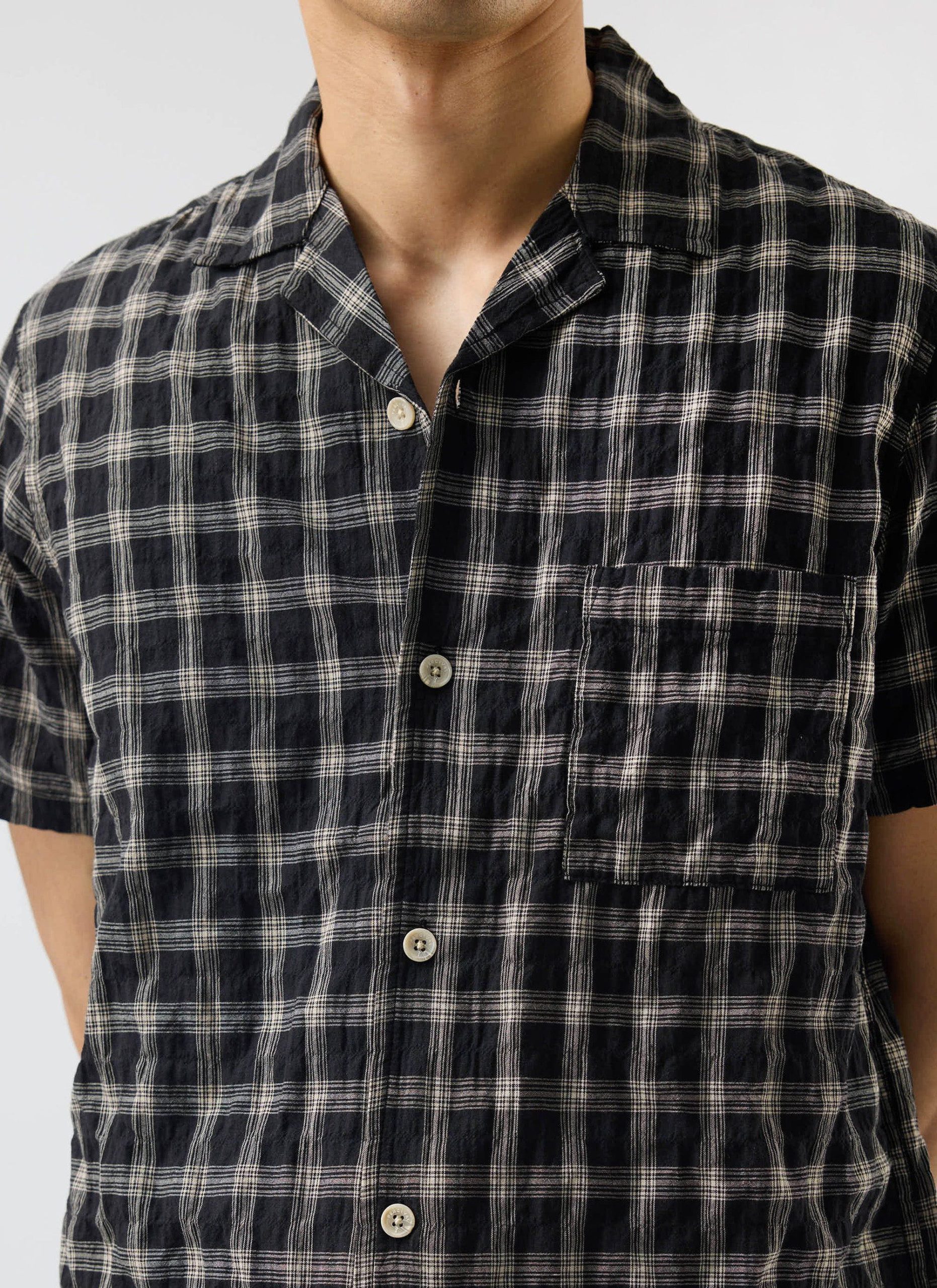 - Features: Men’s Checkered Cuban Collar Shirt in Black and White. Designed in a regular fit, this short sleeve shirt features custom Percival buttons, a chest patch pocket, and carefully constructed shoulders. Made from a premium 99% cotton blend, it’s breathable, lightweight, and ideal for warmer days. Versatile by design, it can be styled solo or layered with ease, an effortless addition to any modern wardrobe.
