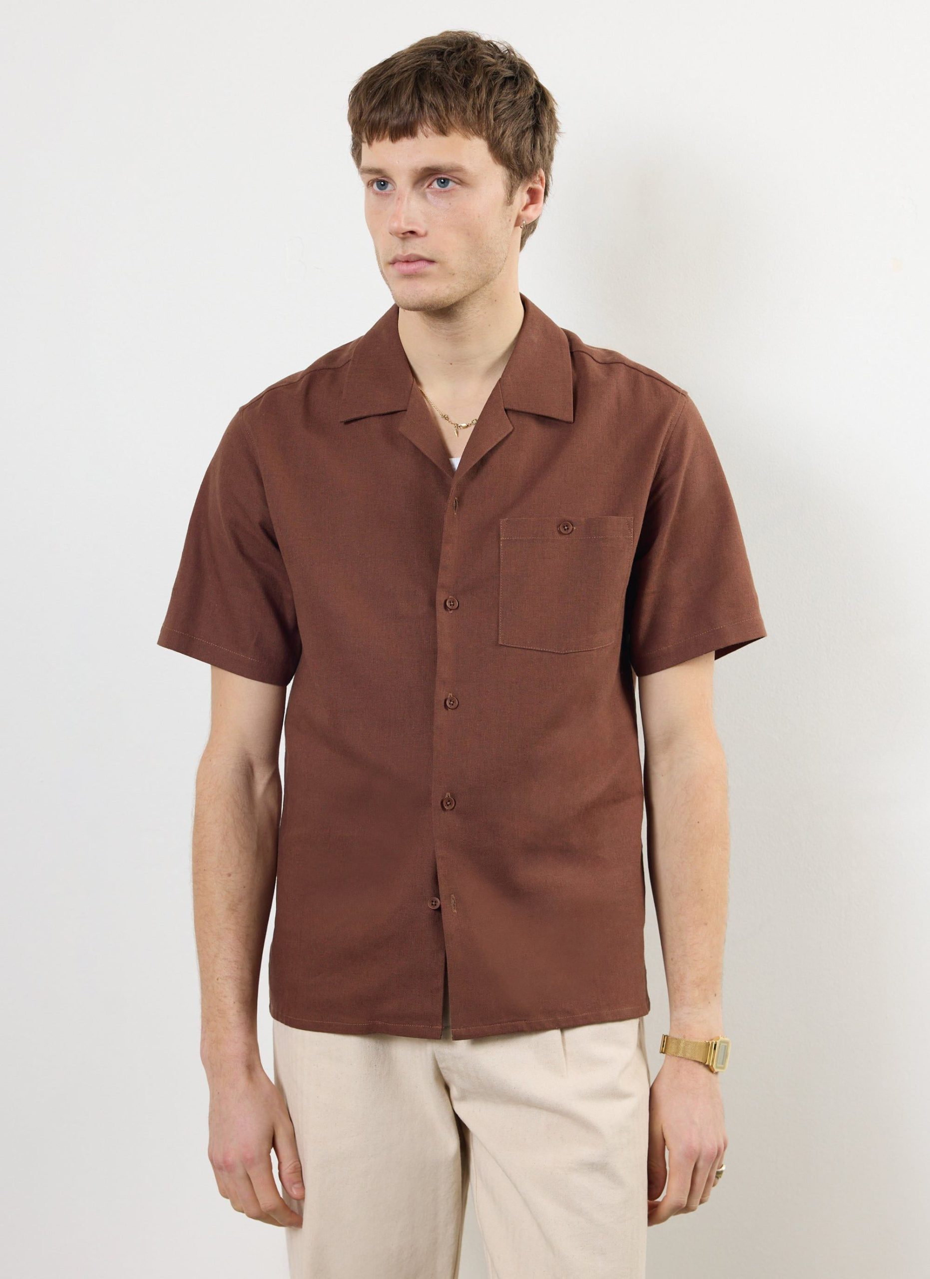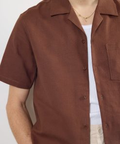 - Features: Men’s Cuban Shirt made from a linen blend in Espresso Brown. The Cuban Linen Shirt features short sleeves, coconut buttons, and increased body widths for a looser, comfortable fit. The Brown Linen Shirt is ideal for the spring and summer months.