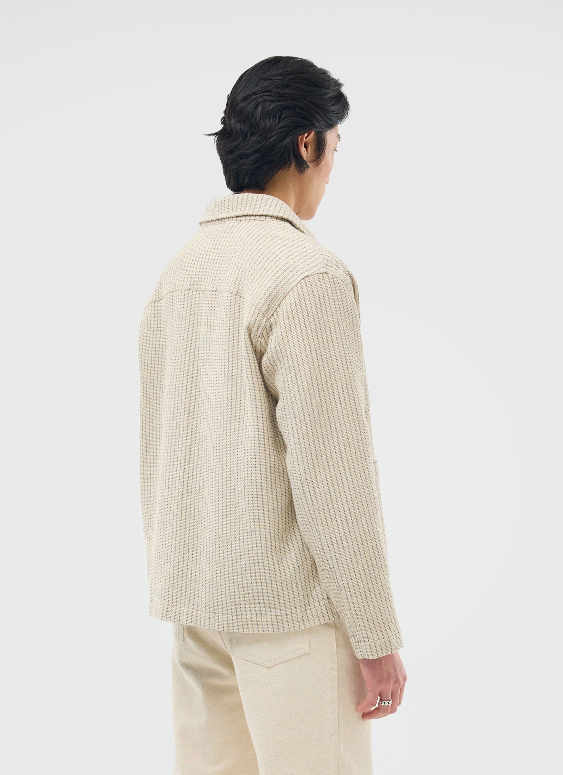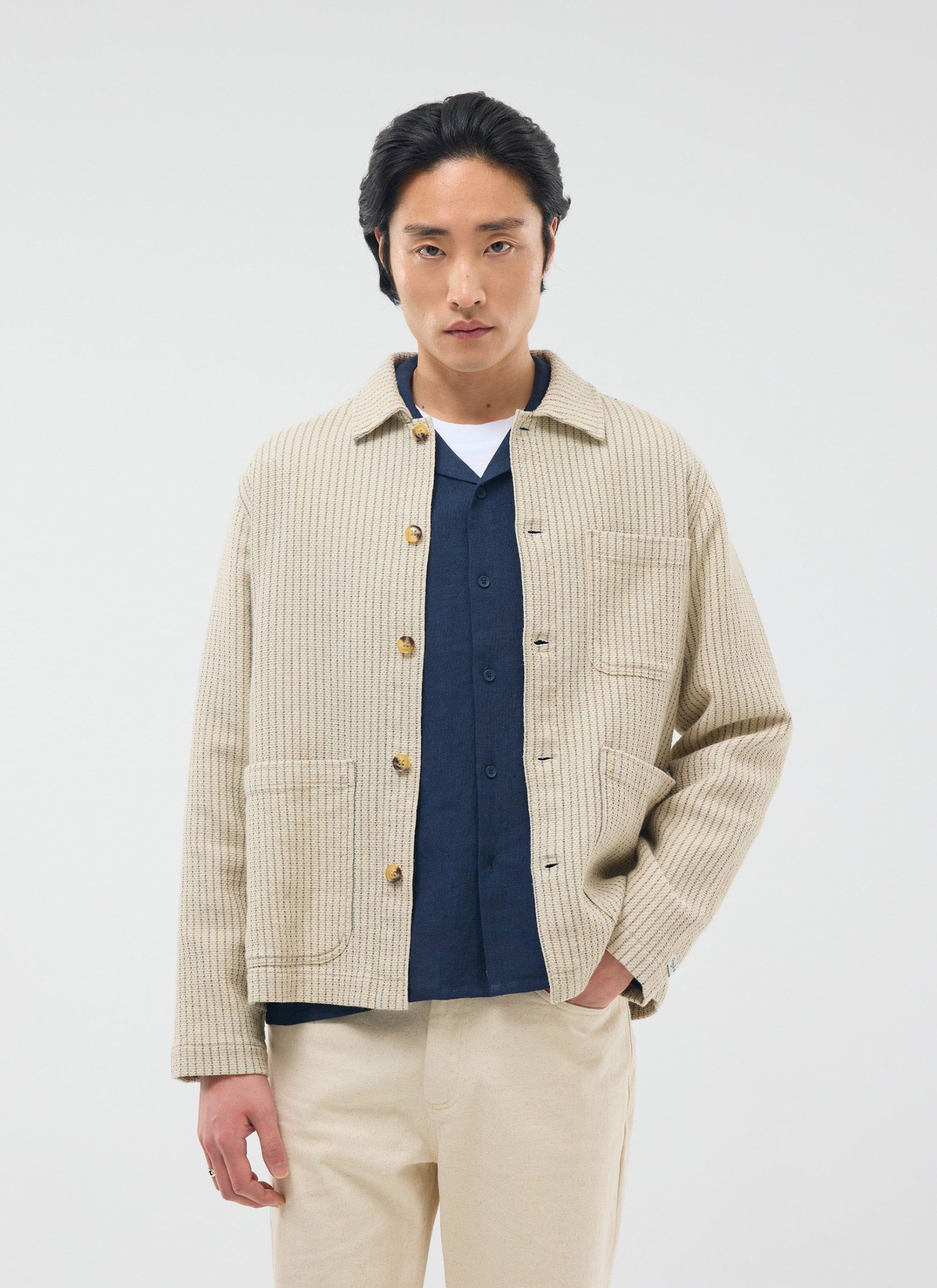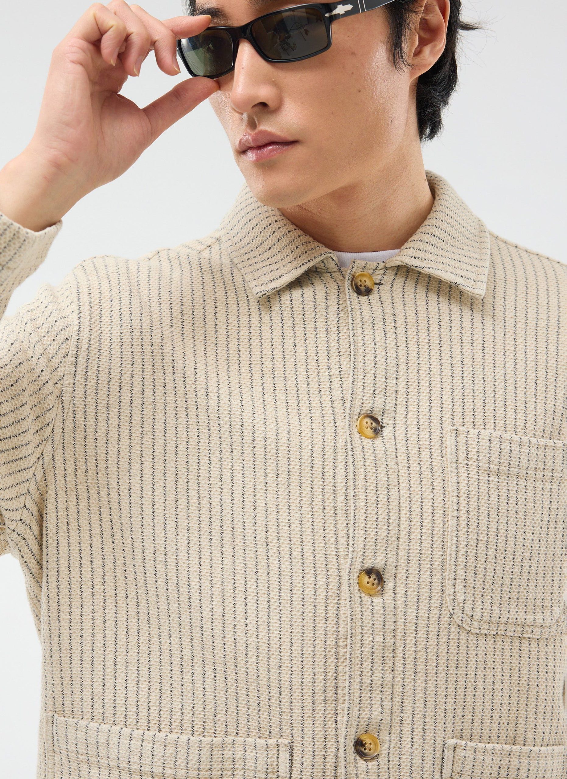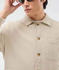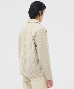 - Features: Men’s Linen Shirt in Ecru Cream, designed with a utilitarian edge. Crafted for modern style and function, the overshirt features custom Percival buttons, patch pockets, an SS25 sleeve label, and a breast patch pocket. This versatile long sleeve shirt is perfect for layering and effortless everyday wear.