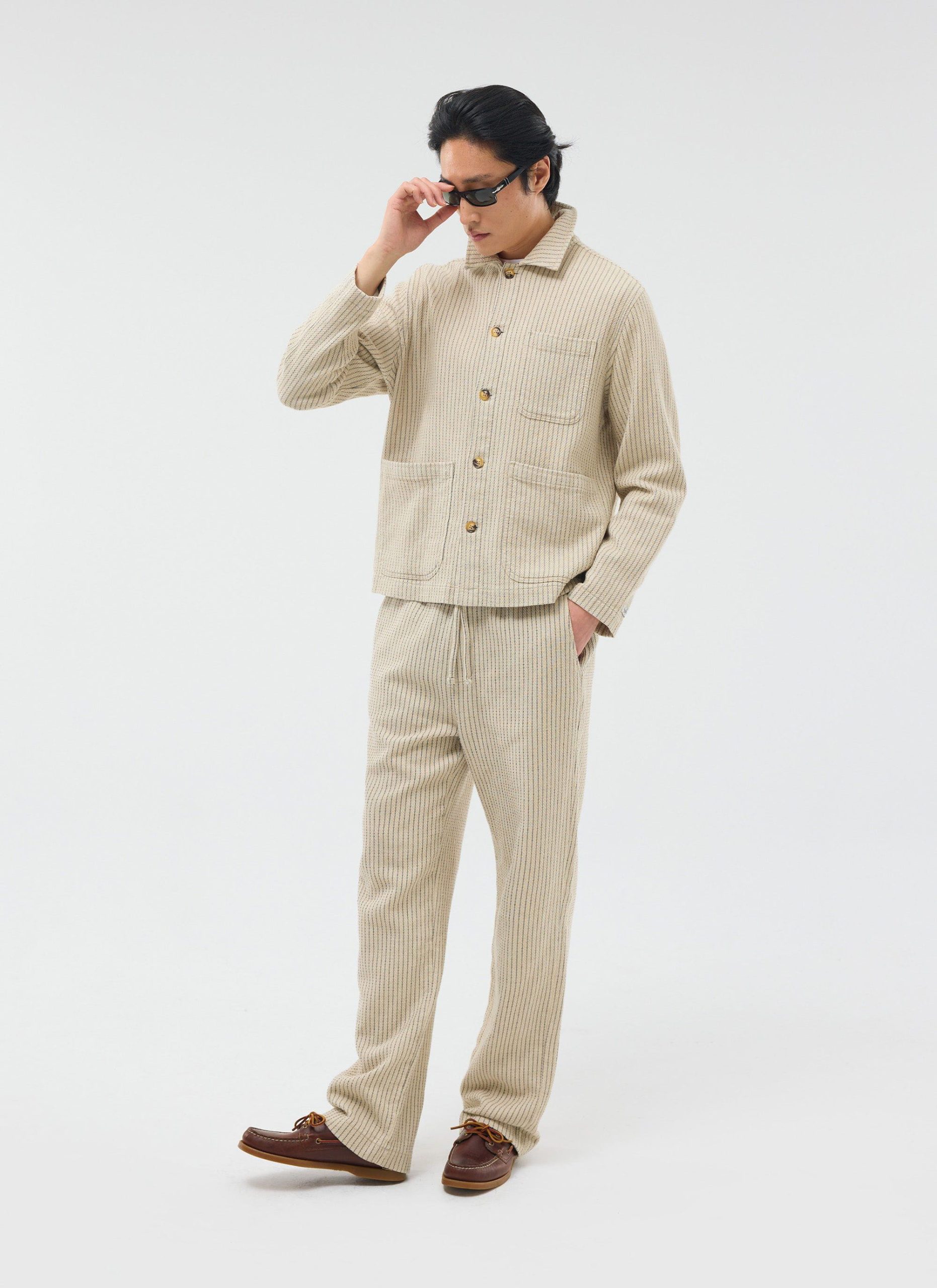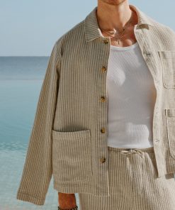 Sorrento linen Overshirt. An overshirt come shacket that can be worn, in or around Sorrento or wherever you want to wear it. There is a full co-ord cool dude look, made in a spicy Sorrento easy breezy linen blend. Game set match, whatever. Best dressed yes. Quality cotton linen yarn dye stripe.