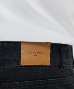 - Features: Men’s black jeans made from a heavyweight 14oz denim and constructed of 100% BCI Cotton. Featuring Percival branded gunmetal shanks and rivets and a branded leather tan back waistband patch, these straight leg jeans are an easy-to-wear wardrobe staple for Autumn and Winter.