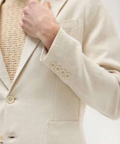 - Features: Men’s tailored blazer, in a new & improved fit with an increased body & sleeve width, thin shoulder pads, and a smooth shaped shoulder, this men’s lightweight linen blazer is ideal for summer weddings or smart dressing, it’s a wardrobe staple. Finished with a single breasted design, button-fastening and external pockets.