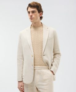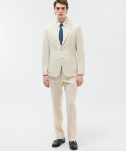 Men’s Linen Tailored Suit Jacket in Cream